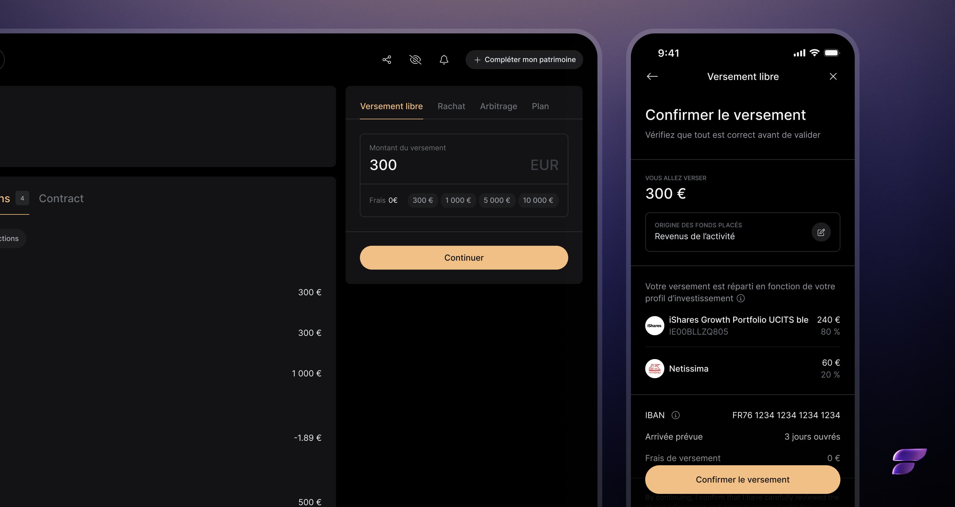 Investissez, suivez le statut de votre opération et gardez le contrôle, au même endroit. Une expérience fluide, cohérente, fidèle à la promesse Finary Life.