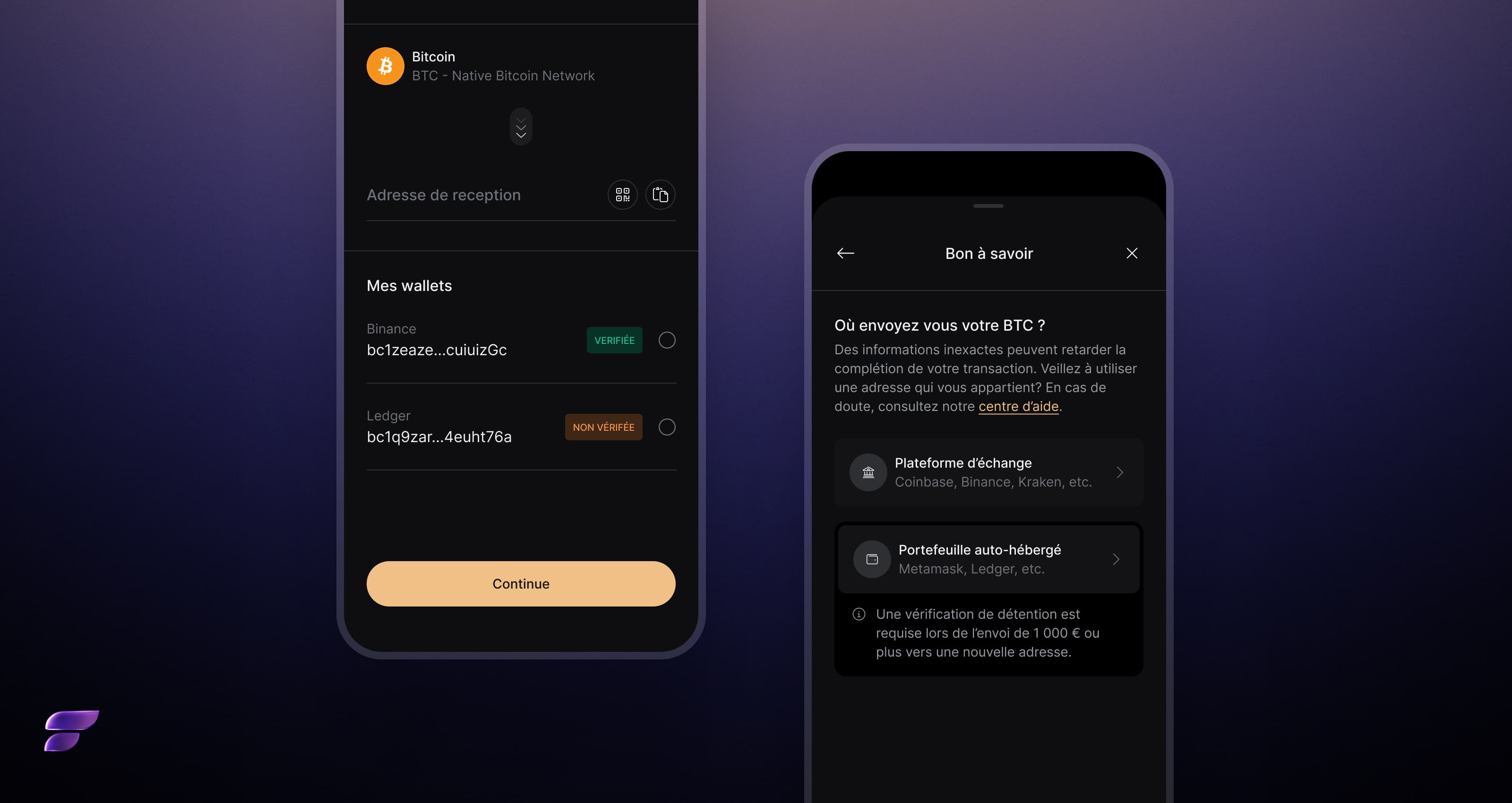 Nous avons repensé l'expérience pour la rendre plus claire et plus prévisible : vous savez désormais en amont quand une vérification est nécessaire, et pourquoi. Résultat : un parcours plus fluide lorsque vous transférez vos crypto-actifs.