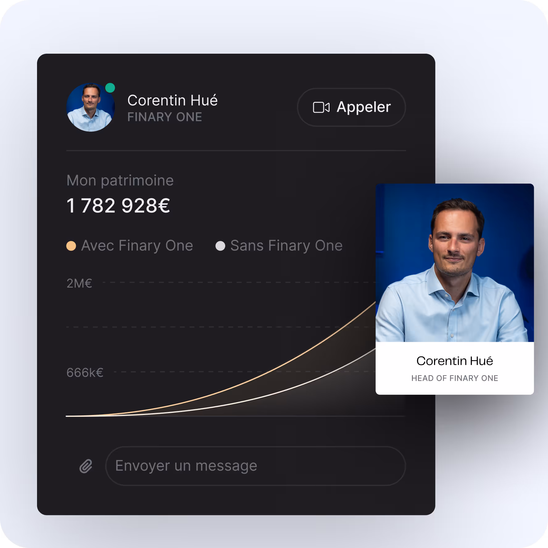 Finary SAS adhérent de la Chambre Nationale des Conseils en Gestion de Patrimoine au capital social de 1 625 000 euros, immatriculé au RCS de Paris sous le numéro 892 357 724, dont le siège social est situé 58 rue de Monceau 75380 Paris 8. Finary SAS exerce l’activité de Conseiller en Investissements Financiers (CIF) et de Courtier en Assurance référencé à l’Orias sous le numéro 21001279, adhérent de la Chambre Nationale des Conseils en Gestion de Patrimoine, association agréée par l’Autorité des Marchés Financiers, avec les garanties financières de l'Assurances Mutuelles MMA IARD.