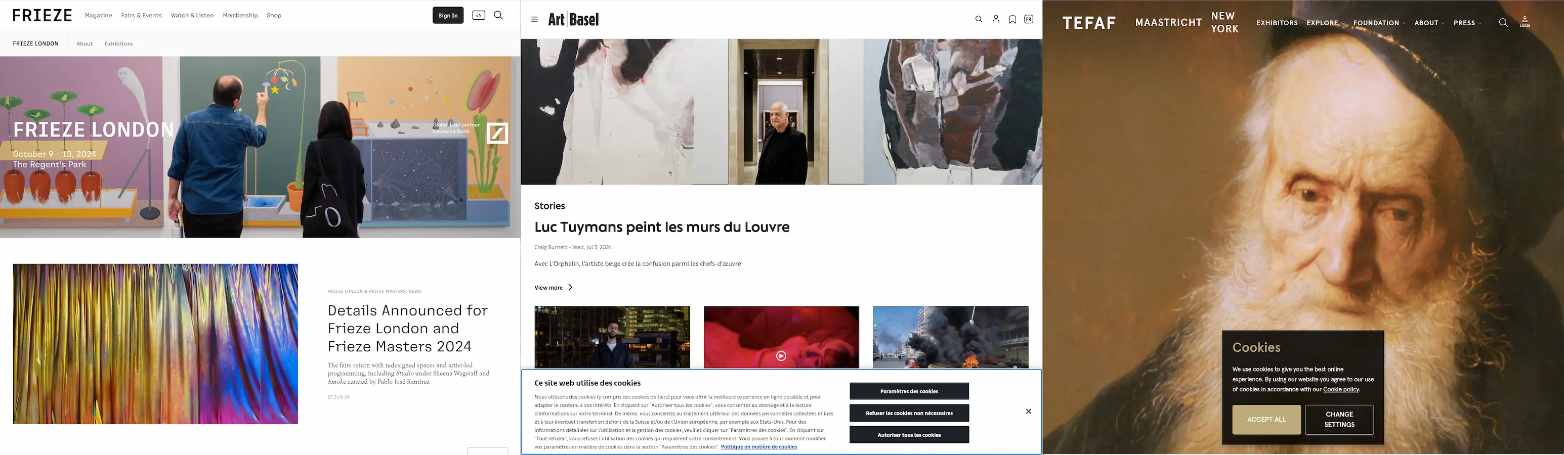 Les foires et expositions offrent un large choix d'œuvres, mais peuvent être coûteuses en termes de frais de déplacement et d'entrée. Les principales foires sont Art Basel, Frieze, et la TEFAF.