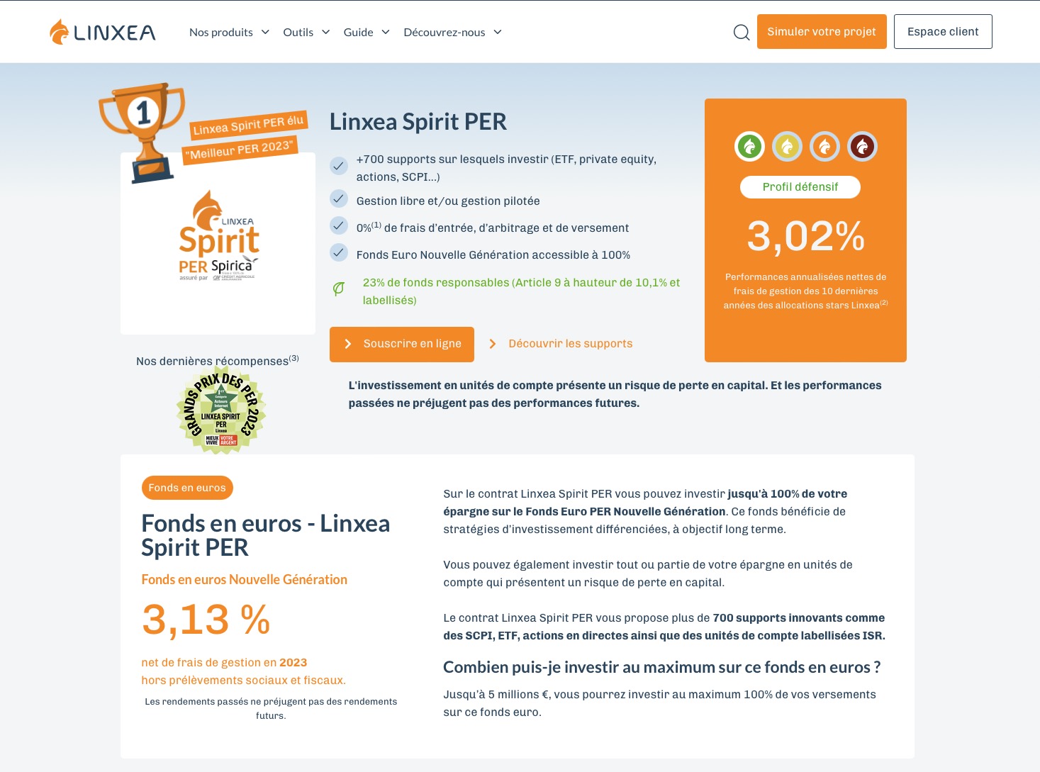 Le Linxea Spirit PER, assuré par Spirica, séduit par son large éventail de supports, incluant OPCVM, SCPI/SCI/OPCI, trackers et titres vifs. L'ouverture en ligne est également un grand avantage.