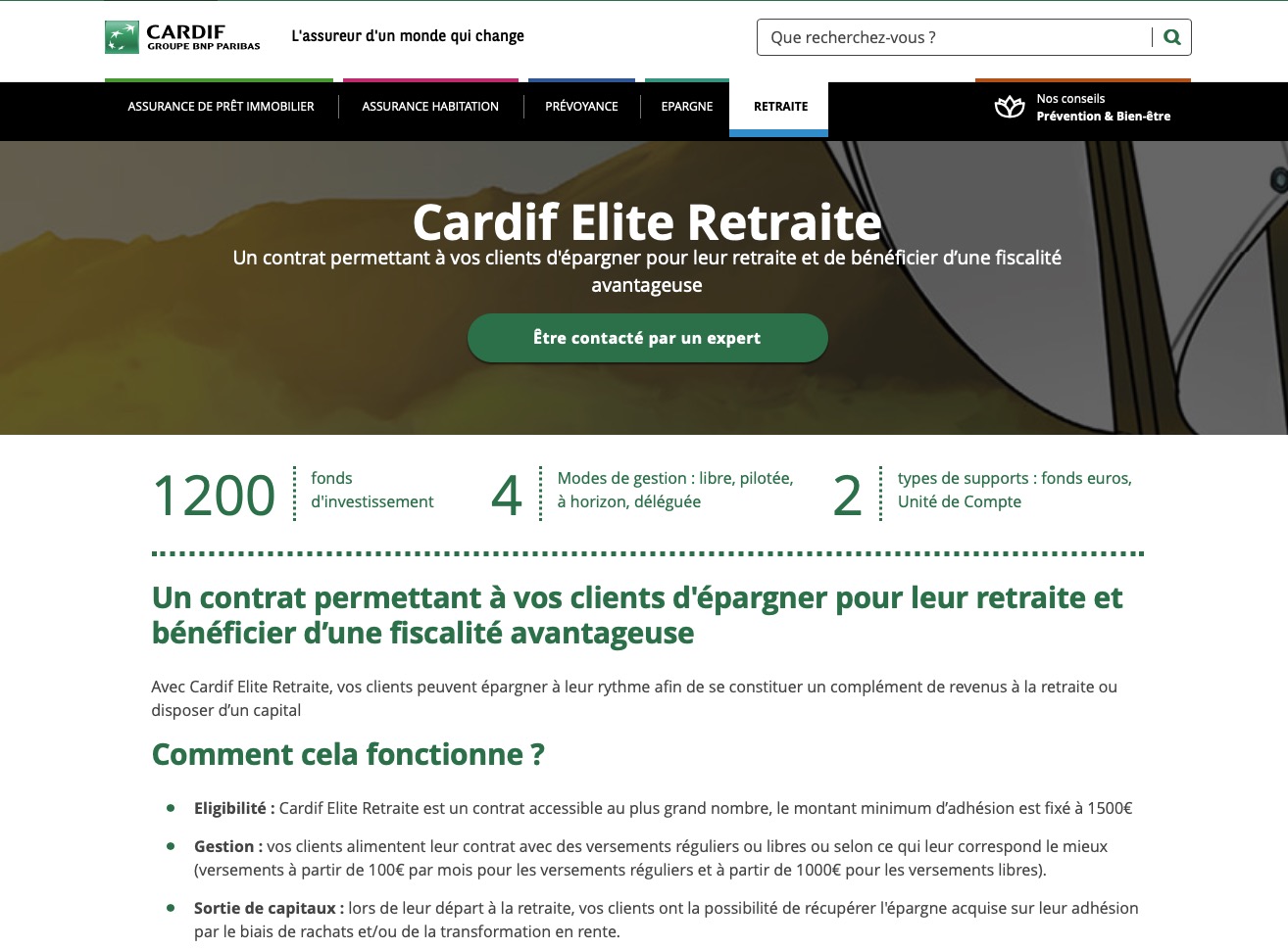Cardif Elite Retraite de BNP Paribas Cardif se démarque par une grande diversité de plus de 2 000 unités de compte et des frais de gestion compétitifs pour le fonds en euros.